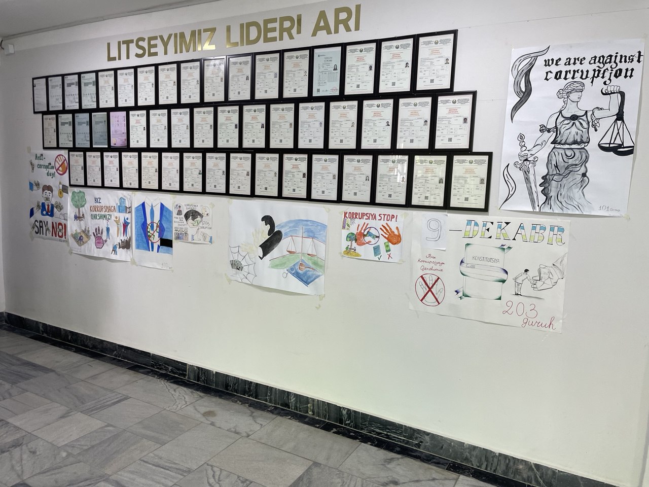 Ushbu tadbirda o'quvchilar “Korrupsiya jamiyat kushandasi” mavzusiga doir bilimlarini o'zlarining chizgan rasmlari va yozgan insholarida namoyon etdilar.