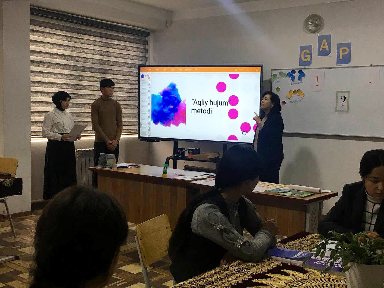 Fan doirasida oʻtkazilgan ushbu ochiq darsda ,,Aqliy hujum", ,,Mozayka", ,, Bittasi notoʻgʻri", ,,Pinword" kabi interfaol metodlardan foydalaniladi.