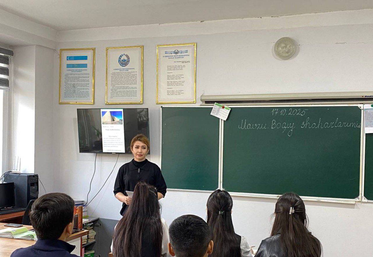 "Kelajak soati" rukuni ostida tashkil etilgan ‘’Ma'rifat soati" darslaridan lavhalar