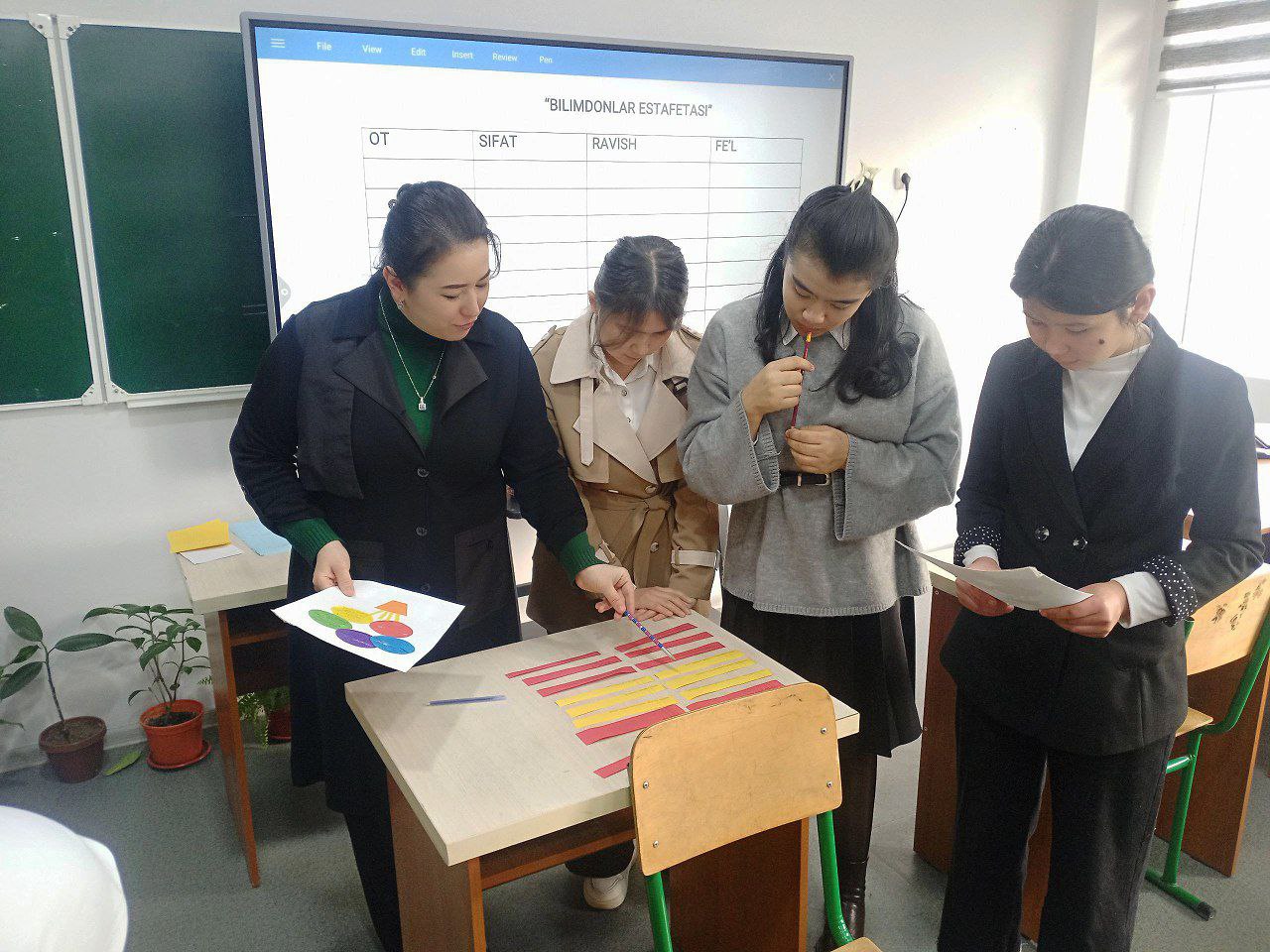 Ona tili va adabiyot fani oyligi doirasida 104-guruh o‘quvchilari ishtirokida “So‘z yasalishi yuzasidan tahlil” mavzusida noan’anaviy ochiq dars mashg‘uloti tashkil etildi