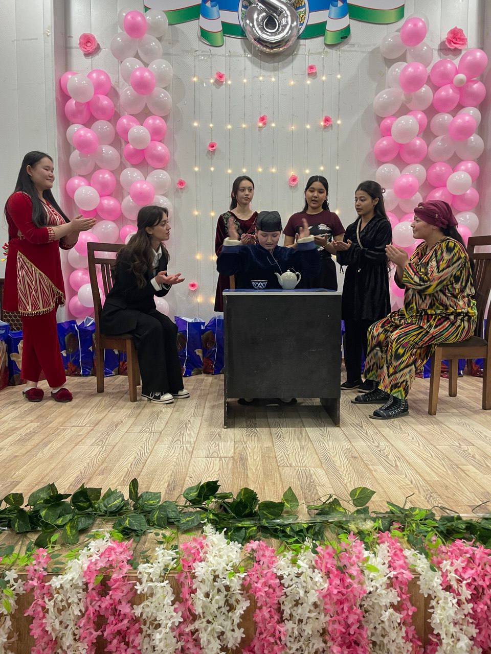 Samarqand davlat chet tillar instituti akademik litseyida 8-mart ,,Xalqaro xotin-qizlar kuni’’ munosabati bilan erta tongdan boshlangan bayram shukuhi kuni bilan davom etdi. ‘’Bahor gullaridek go’zalsan ayol’’ nomli bayram tadbiri yuqori saviyada kuy va qo’shiqlar, ayolni tarannum etuvchi she’rlar-u, qiziqarli sahna ko’rinishlari bilan tashkil qilindi.