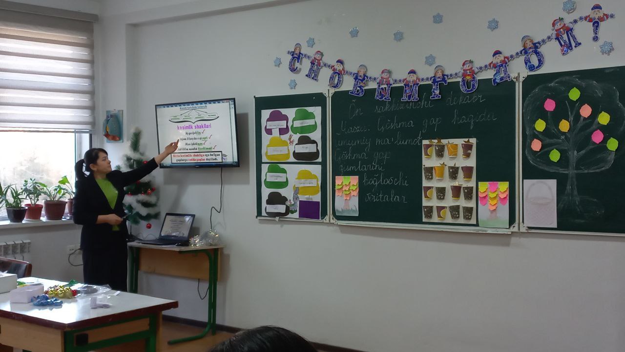 "Qo‘shma gap haqida umumiy ma’lumot. Qo‘shma gap qismlarini bog‘lovchi vositalar" mavzusida ochiq dars o‘tkazildi