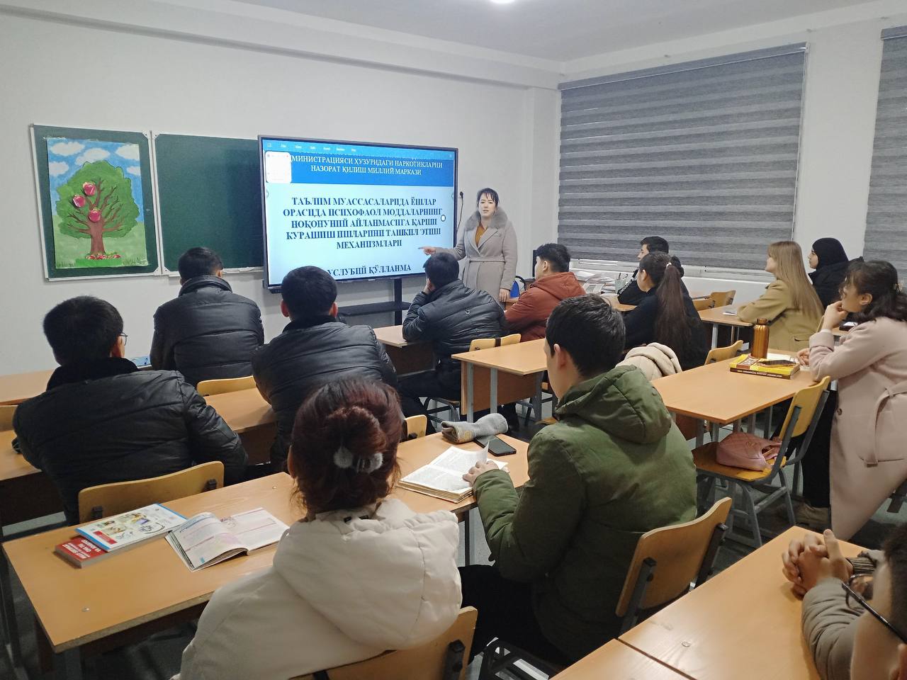 Joriy yilning 31-yanvar sanasida Samarqand davlat chet tillar instituti akademik litseyi o‘quvchilariga Samarqand viloyati hokimligining 2024-yil 25-dekabrdagi 6274/01-25-sonli xati bilan ijroga qaratilgan Oʻzbekiston Respublikasi Prezidenti Administratsiyasi huzuridagi Narkotiklarni nazorat qilish milliy markazining 2024-yil 25-dekabrdagi 04-939-sonli xati ijrosi yuzasidan giyohvandlikning salbiy oqibatlari va u keltirib chiqaradigan muammolar, uning noqonuniy aylanishiga vositachi bo‘lgan insonga jazo muqarrarligini tushintirish maqsadida "Jinoyatga jazo muqarrar" mavzusida Ma'naviyat soati darslari tashkil etildi.