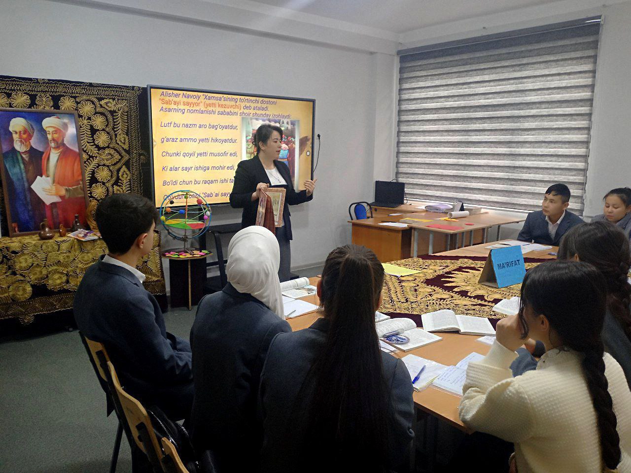 Ona tili va adabiyot fan oʻqituvchisi Nafisa Nuriddinova tomonidan o'tkazilgan “Sab’ayi sayyor” dostoni tahliliga bag‘ishlangan ochiq dars mazmunli va samarali o‘tdi