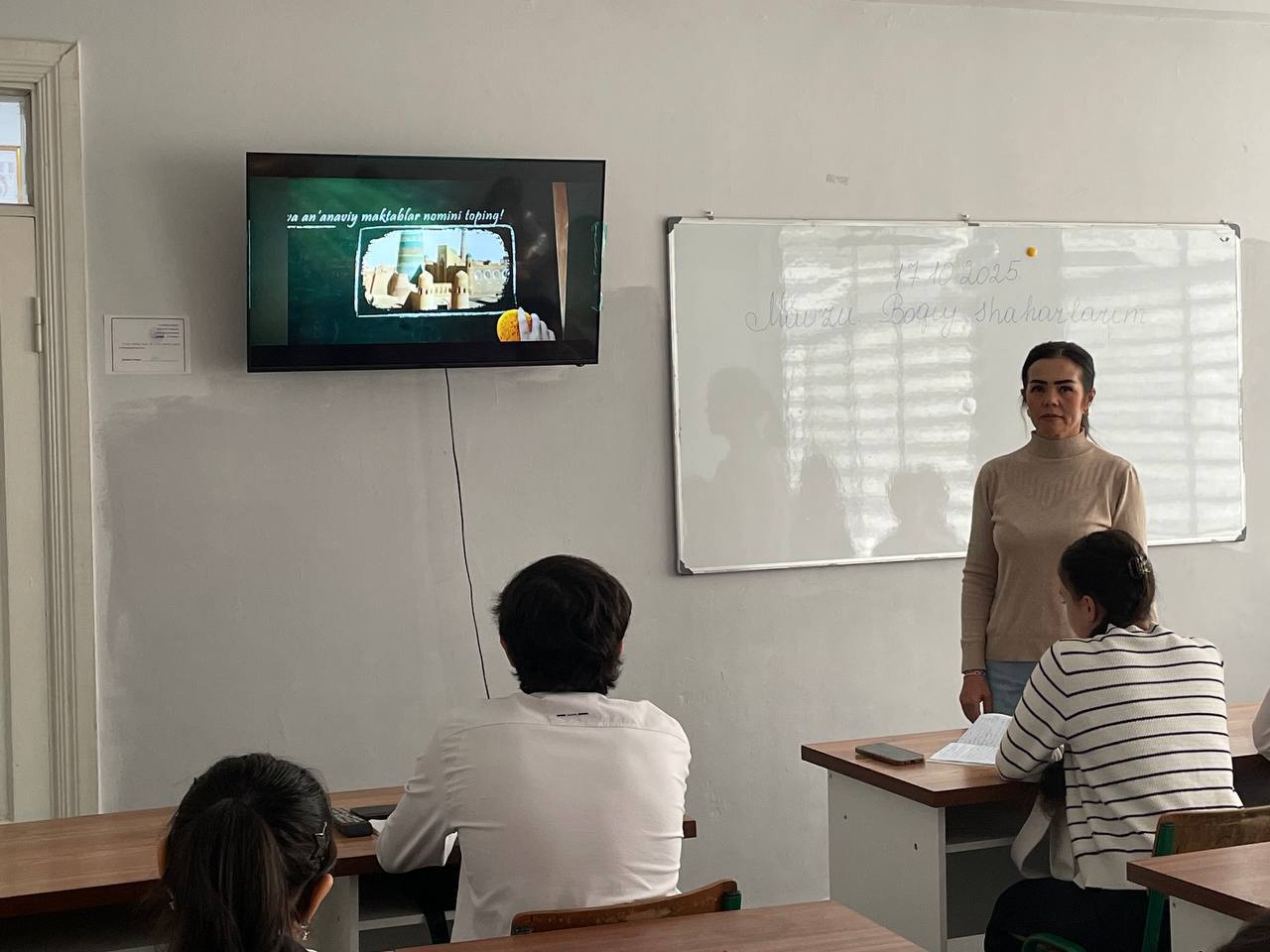 "Kelajak soati" rukuni ostida tashkil etilgan ‘’Ma'rifat soati" darslaridan lavhalar