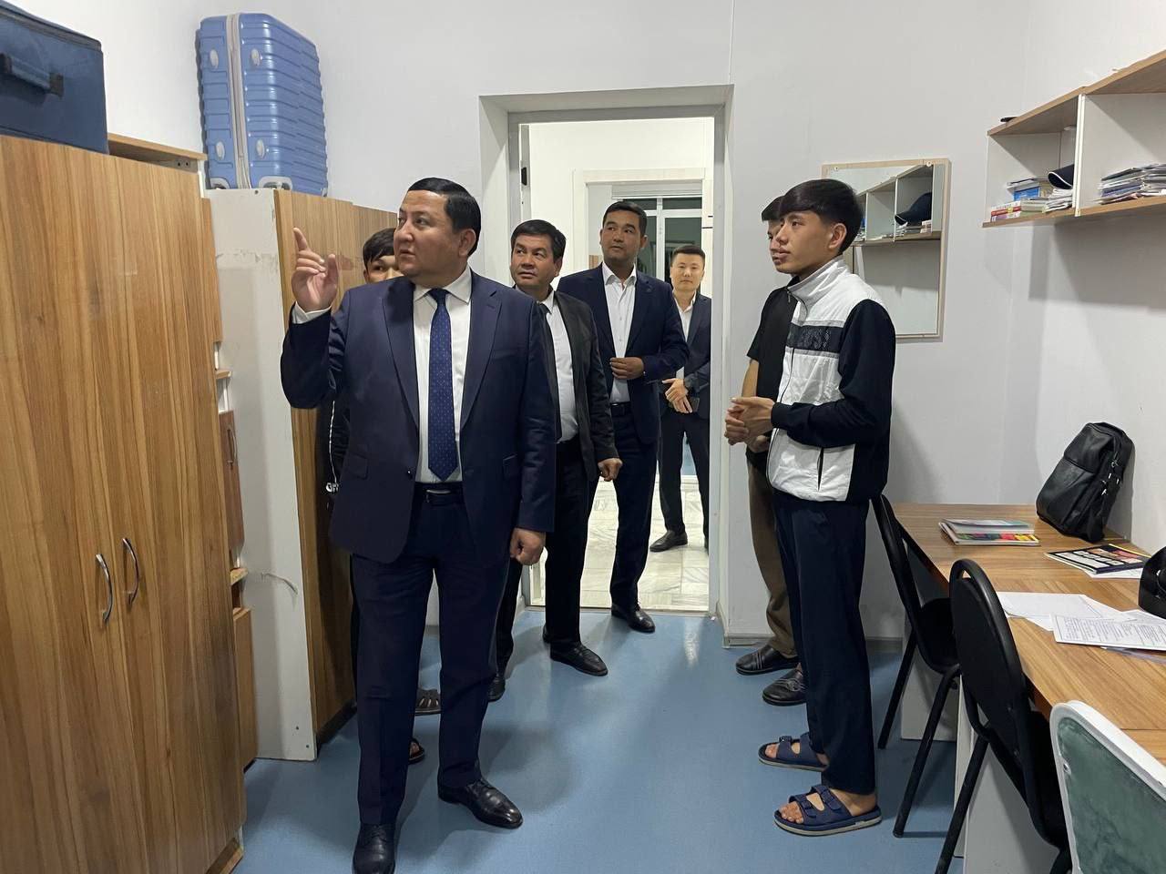 Dastlab rektor talabalar turar joyida yoshlar uchun yaratilgan sharoitlar bilan tanishdi. Yashash xonalari, kutubxona, oshxona, yuvinish xonalarini ko‘zdan kechirdi.