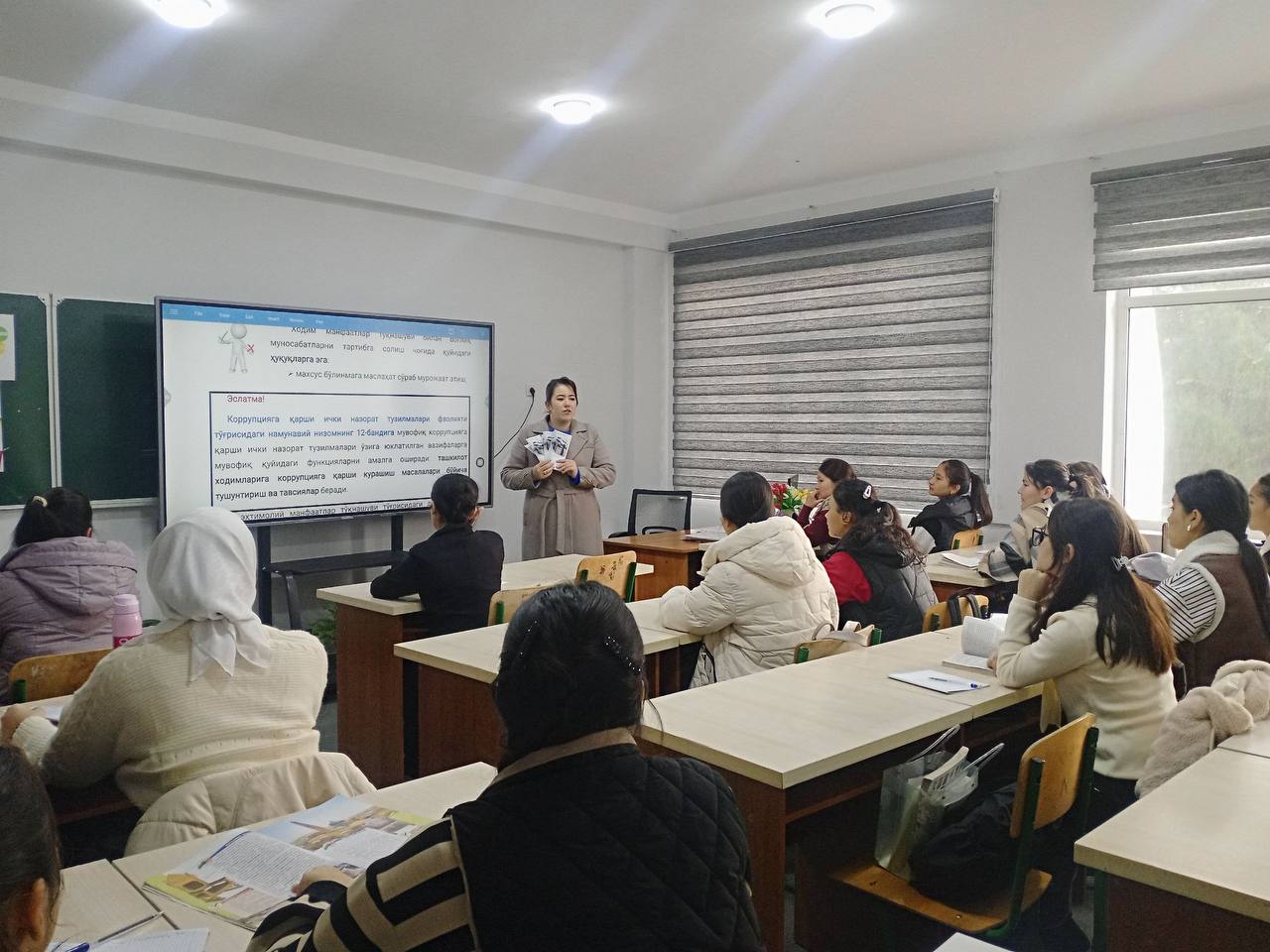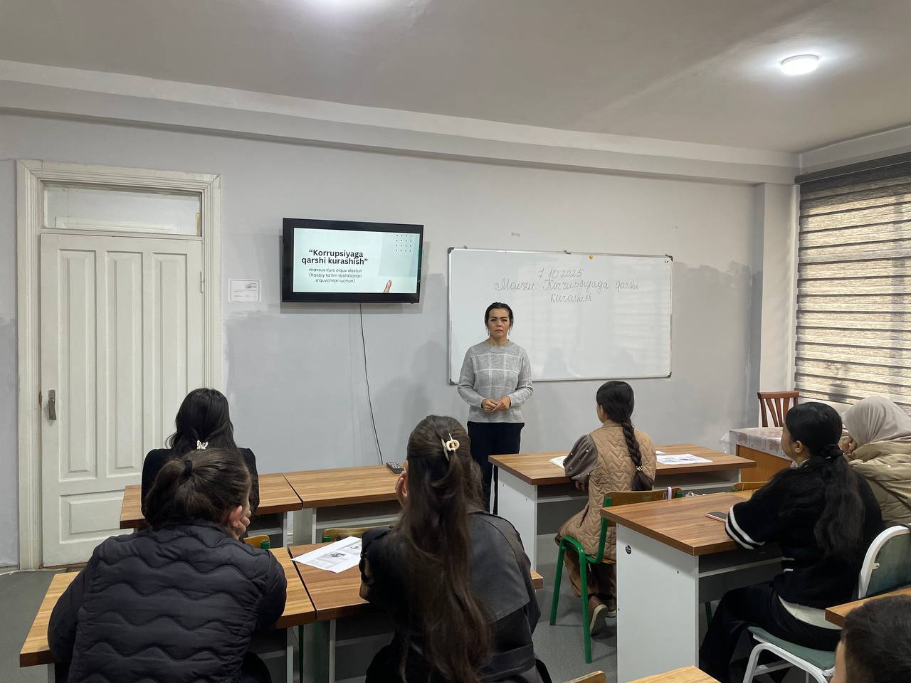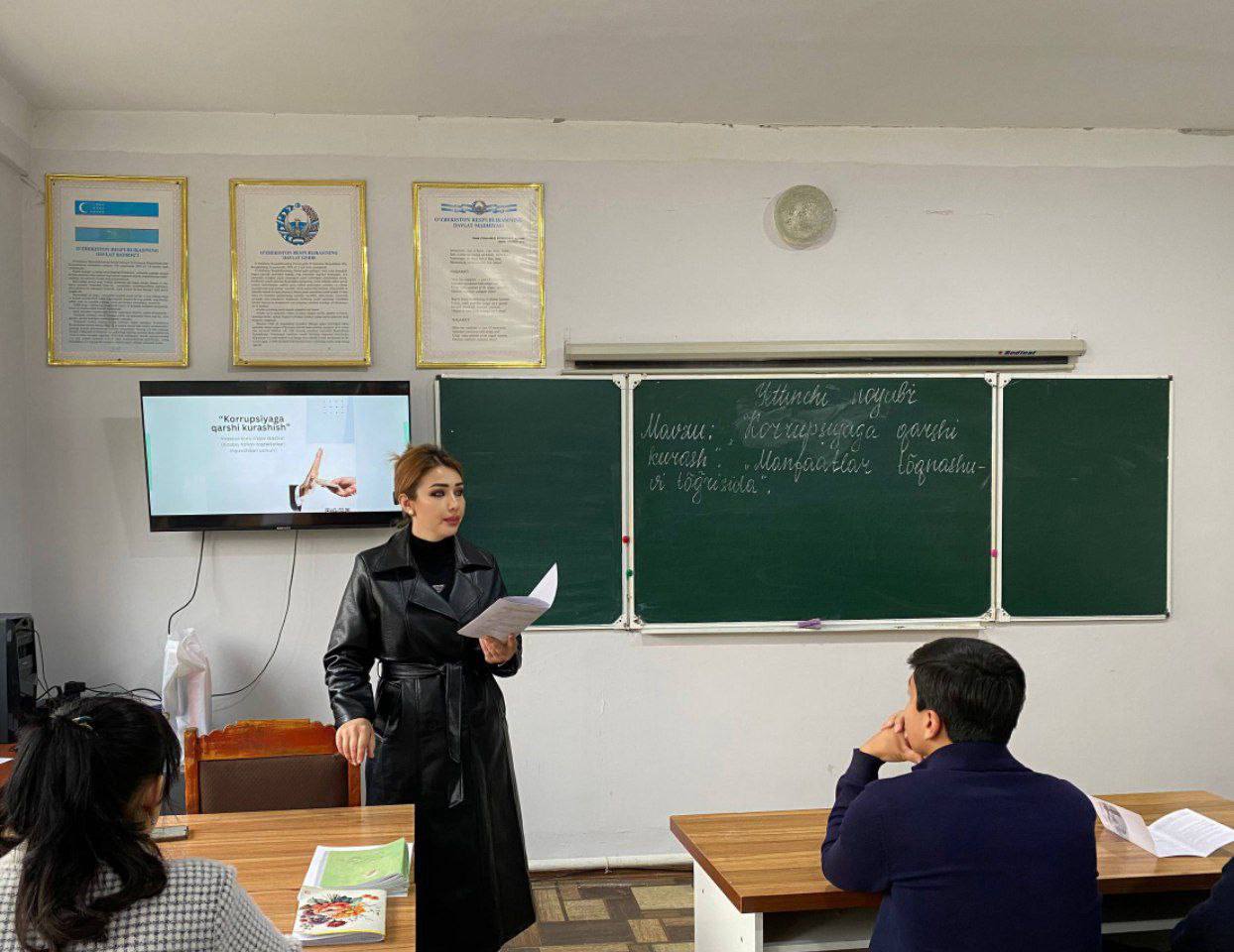 Samarqand davlat chet tillar instituti akademik litseyida O‘zbekiston Respublikasi Oliy ta’lim, fan va innovatsiyalar vazirligi tomonidan “O‘zbekiston Respublikasi Oliy ta’lim, fan va innovatsiyalar vazirligi tizimi”da korrupsiyaviy omillarni aniqlash va bartaraf etish hamda “Korrupsiyadan holi” muhitni yaratish borasida aniq chora-tadbirlarni amalga oshirish bo‘yicha yo‘l xaritaning 21.3-bandi ijrosi yuzasidan “Korrupsiyaga qarshi sog‘lom muhitni yaratish va manfaatlar to‘qnashuviga yo‘l qo‘ymaslik” mavzusida Ma'naviyat soati dars mashg‘ulotlari tashkil qilindi.