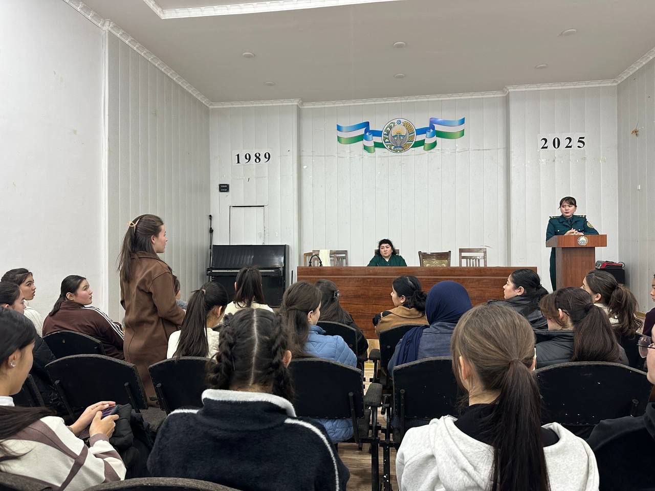 Suhbatga SamDChTI inspektori, katta leytenant Z. Ibodullayeva taklif etildi. Soha vakili tomonidan o‘tkazilgan targ‘ibot-tashviqot jarayonida o‘quvchi qizlarga kibermadaniyat, kiberjinoyatlar, tazyiq va zo‘ravonlikning turlari, shuningdek ulardan himoyalanish uchun zarur bo‘lgan huquqiy bilim va ko‘nikmalar haqida batafsil ma’lumot berildi.