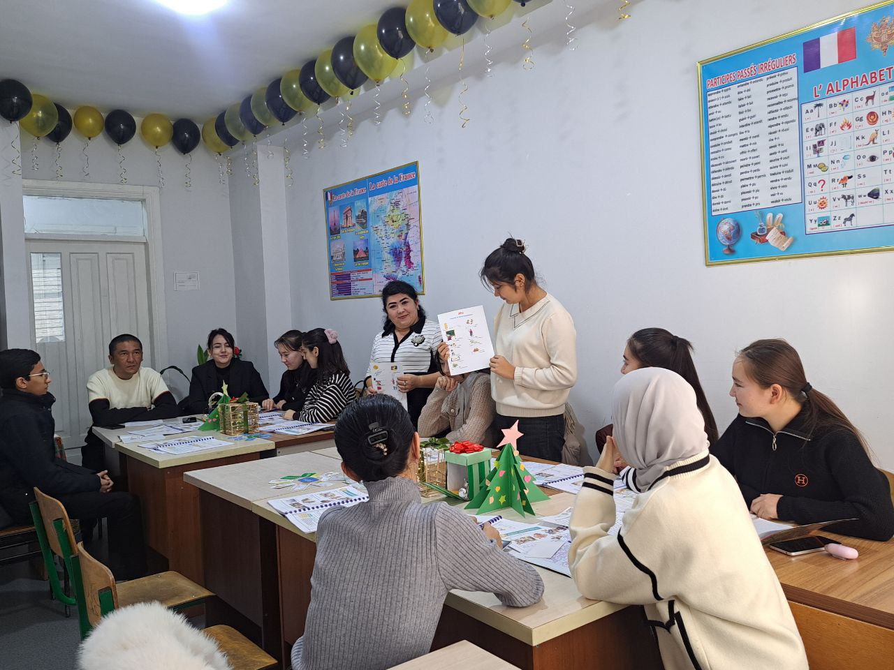 Dars jarayonida Yangi yil bayrami haqida hamda fransuz xalqining bu bayramdagi an’analari va madaniyati haqida ma’lumotlar berildi. O‘quvchilar faol ishtirok etib, o‘z bilim va ijodkorliklarini namoyon etdilar.