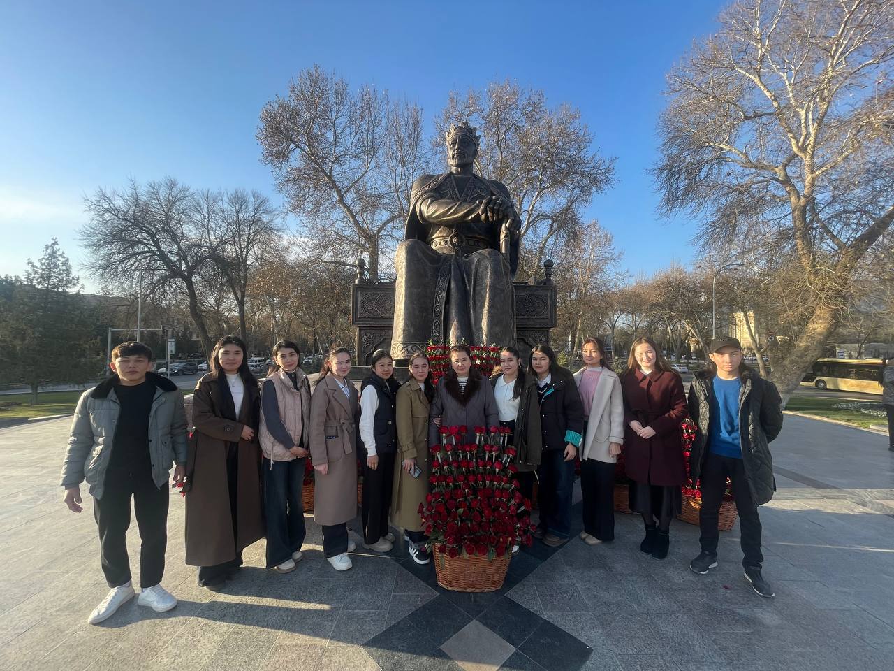 202-, 206-guruh o'quvchilari guruh rahbarilari boshchiligida buyuk sarkarda bobomiz Amir Temur poyiga gul qo‘yish marosimida ishtirok etishdi